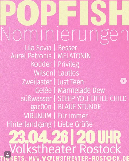 Pop-FiSH-Musikvideoaward am 23.04.26 im Volkstheater Rostock