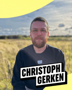 Christoph Gerken lebt in Hamburg und kümmert sich um Bookings bei Buback Tonträger. Er vertritt Künstler*innen wie AUGN, CAVA, Die Goldenen Zitronen uvm. Z.z. ist er Tourmanager von grim104 und Rocko Schamoni.
