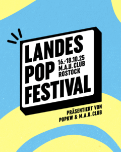 Landespopfestival – Was ist das?Landespopfestival, das – jährliches, von PopKW und M.A.U. Club Rostock organisierte Konzertereignis für sechs Newcomeracts aus M-V, bei dem drei Profis aus dem Musikbusiness sowie das Publikum ihren Favoriten auszeichnen. Preisstifter und Förderer ist das Ministerium für Bildung, Wissenschaft und Kultur M-V, und die Hanse- und Universitätsstadt Rostock.